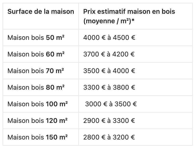 Prix moyen d’une maison en bois au m²