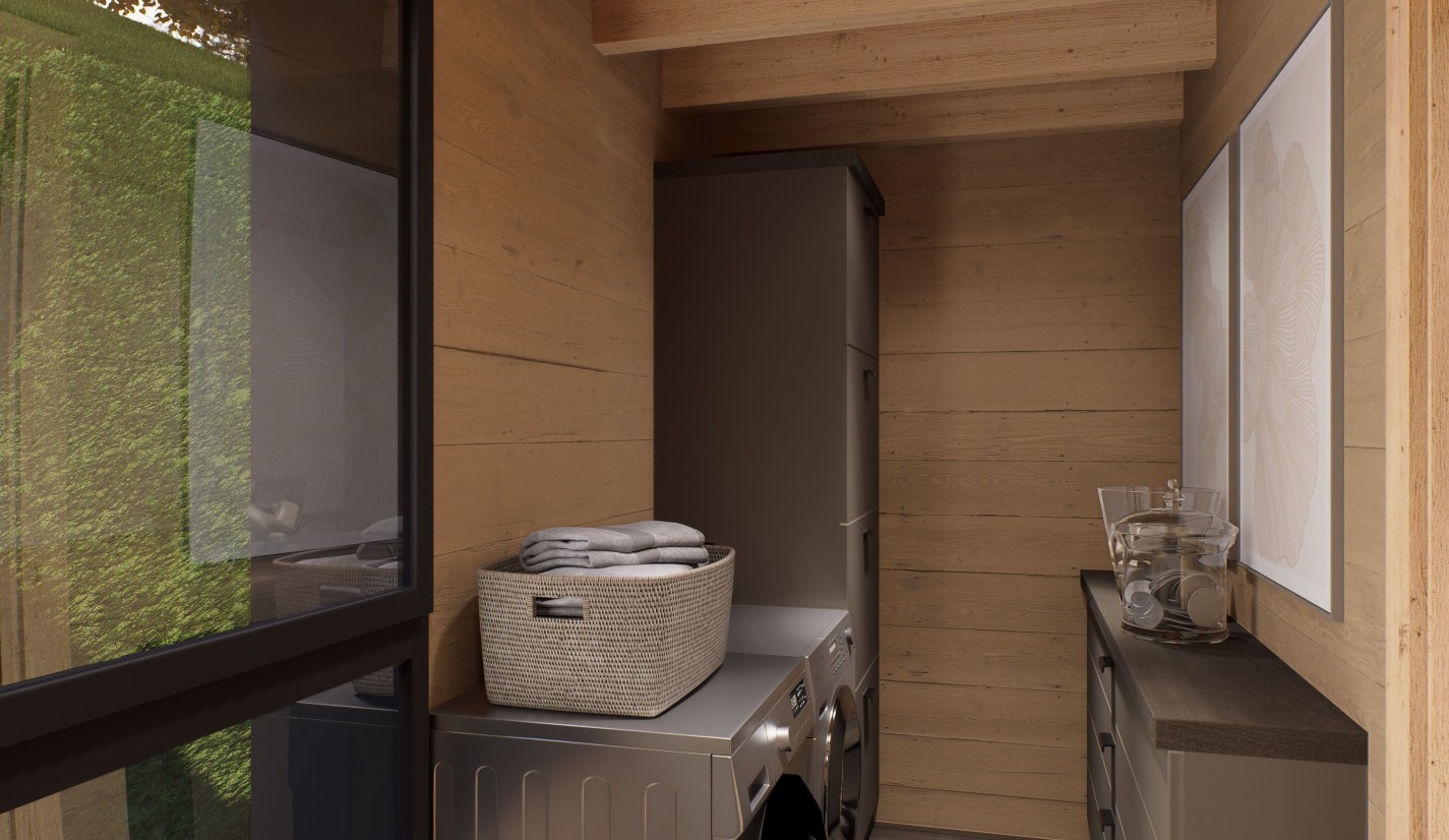L’intérieur propose une pièce de vie spacieuse et lumineuse, trois chambres, une salle de bain, deux WC ainsi qu’une buanderie. Une terrasse couverte prolonge les espaces de vie et permet de profiter du paysage en toute saison.