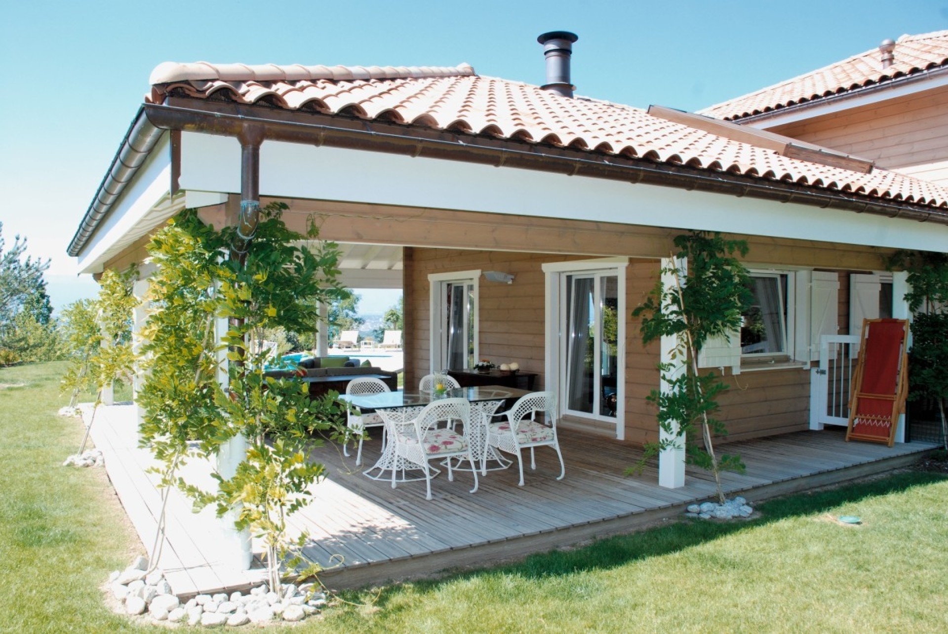 Style contemporain Espace et accent provençal Bossey (74) Une touche de Provence volontairement décalé pour cette demeure fort bien intégrée à son environnement… genevois ! Retour suivant