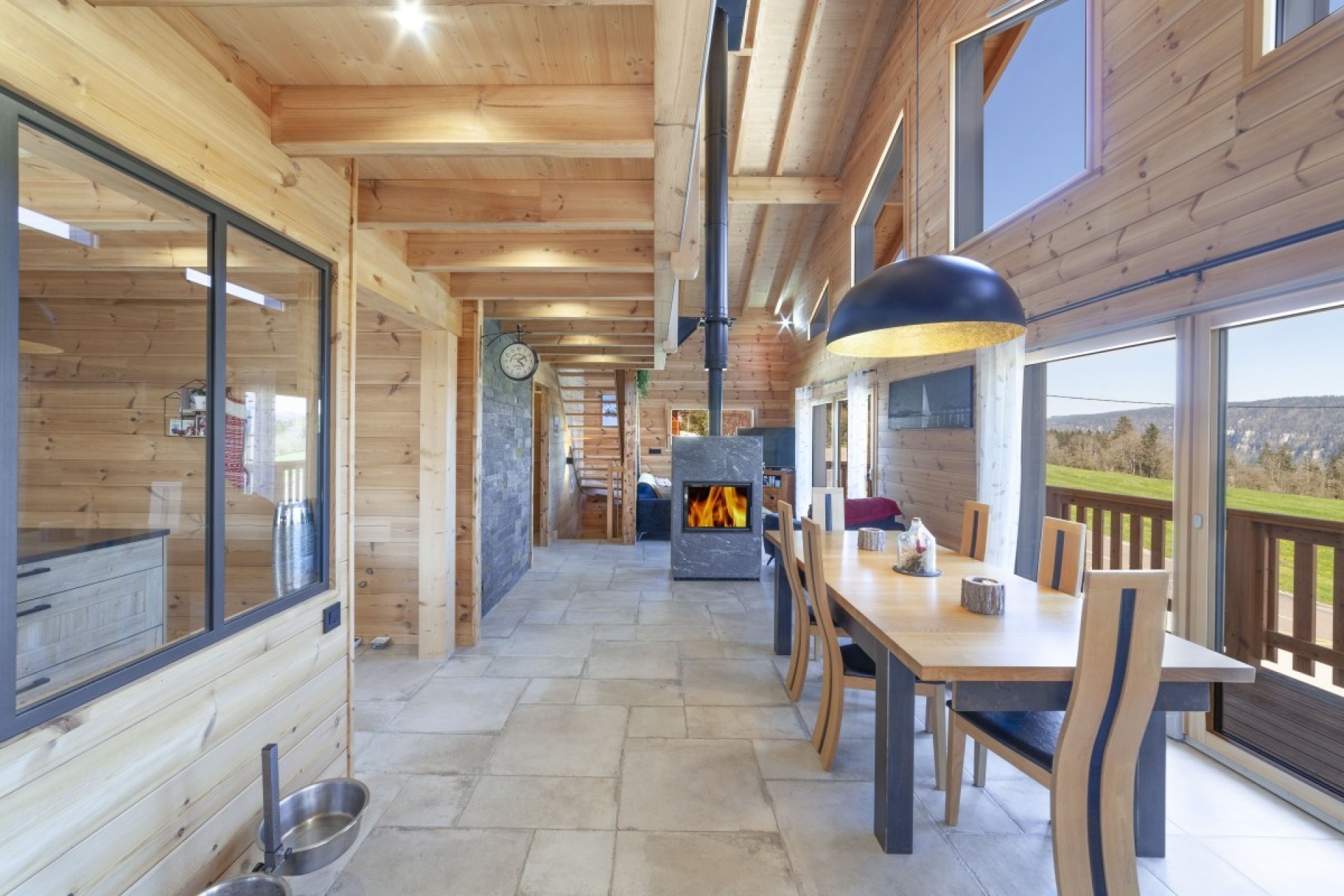 Avec sa mezzanine, nous avons une vue imprenable depuis les deux étages sur les paysages franc-comtois grâce à ses 3 baies vitrées laissant entrer une grande quantité de lumière naturelle, créant une ambiance lumineuse et reposante.